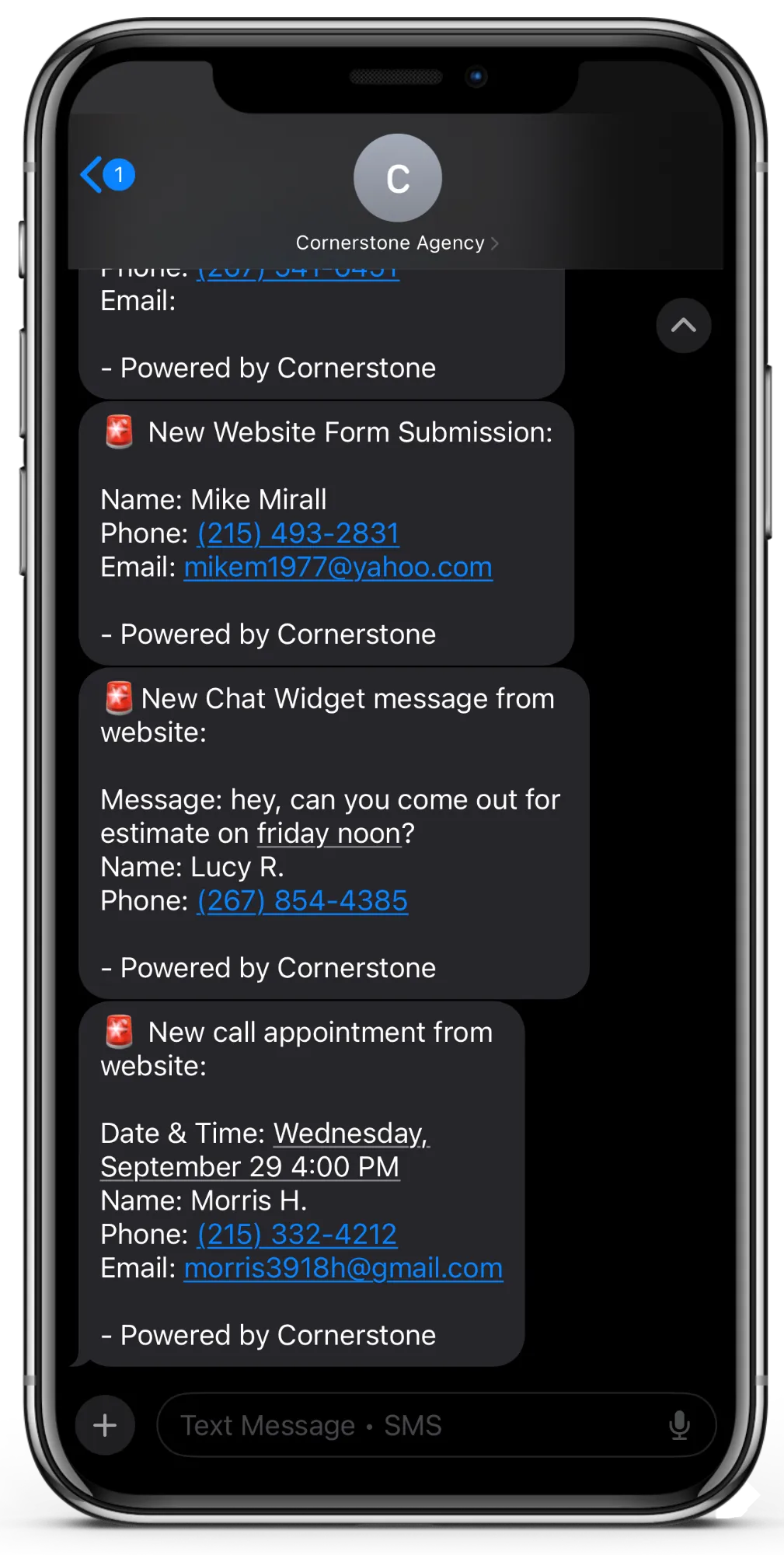 Every lead goes straight to your phone. No dashboards to check. No logins. Just a text with the lead's info the moment they reach out.
